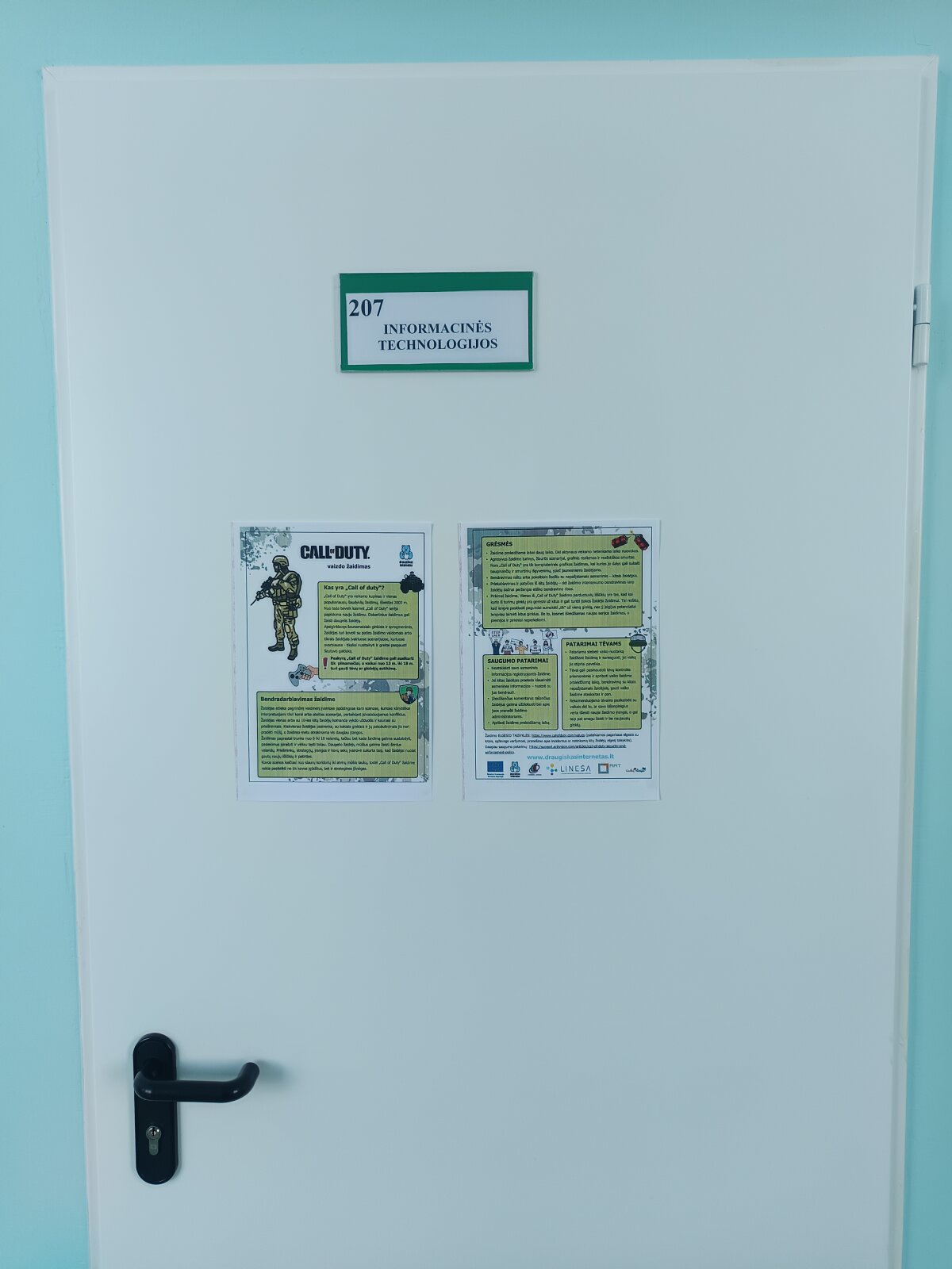 Visą savaitę mokyklos erdves puošė informacinė medžiaga, padėjusi mokyklos bendruomenei susipažinti su skirtingomis internetinėmis platformomis ir saugaus elgesio jose principais. Ji kvietė stabtelėti, pamąstyti ir sąmoningiau naudotis internetu.
