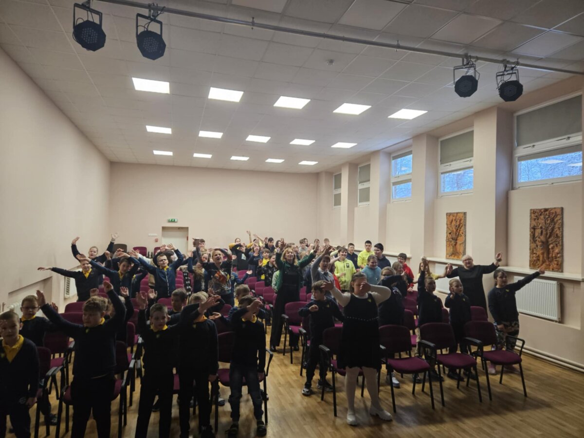 valstybės atkūrimo diena“. Pamokoje dalyvavo 1-8 klasių mokiniai ir mokytojai.