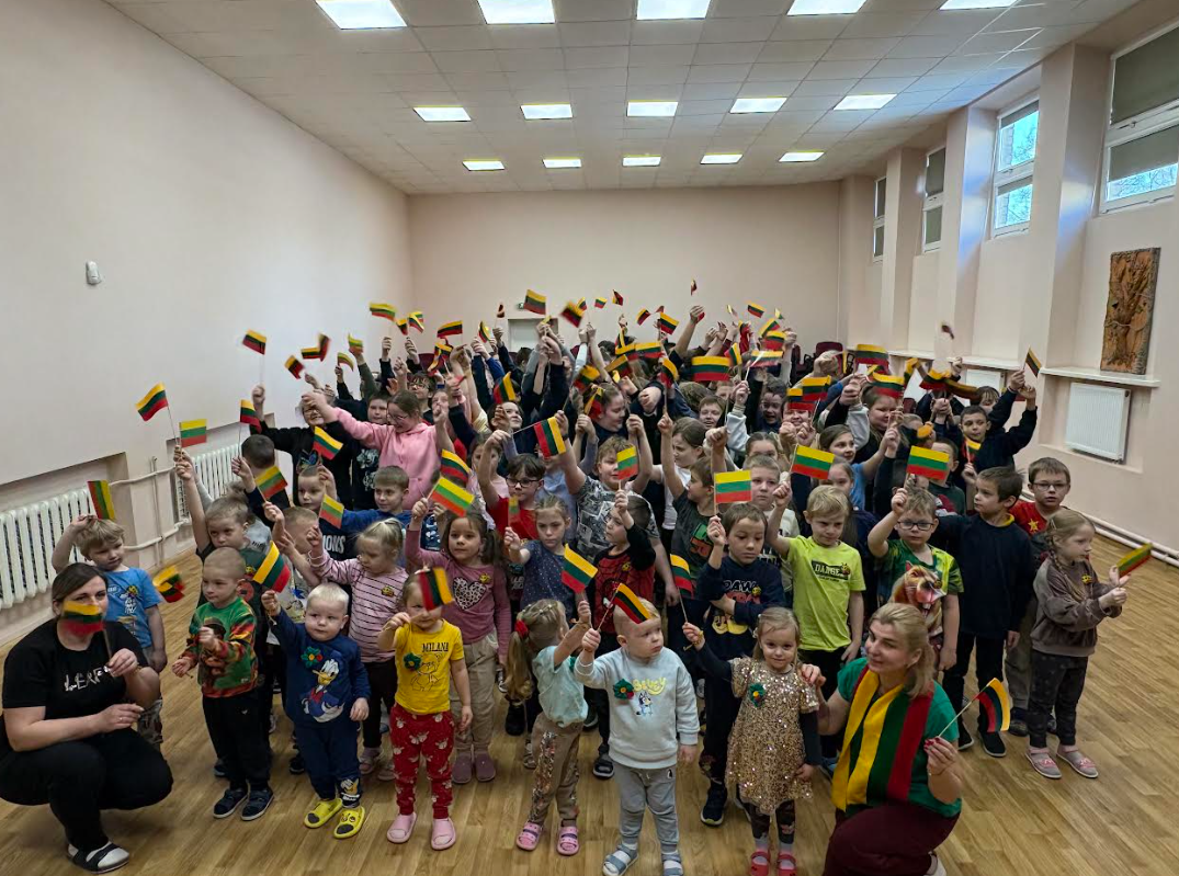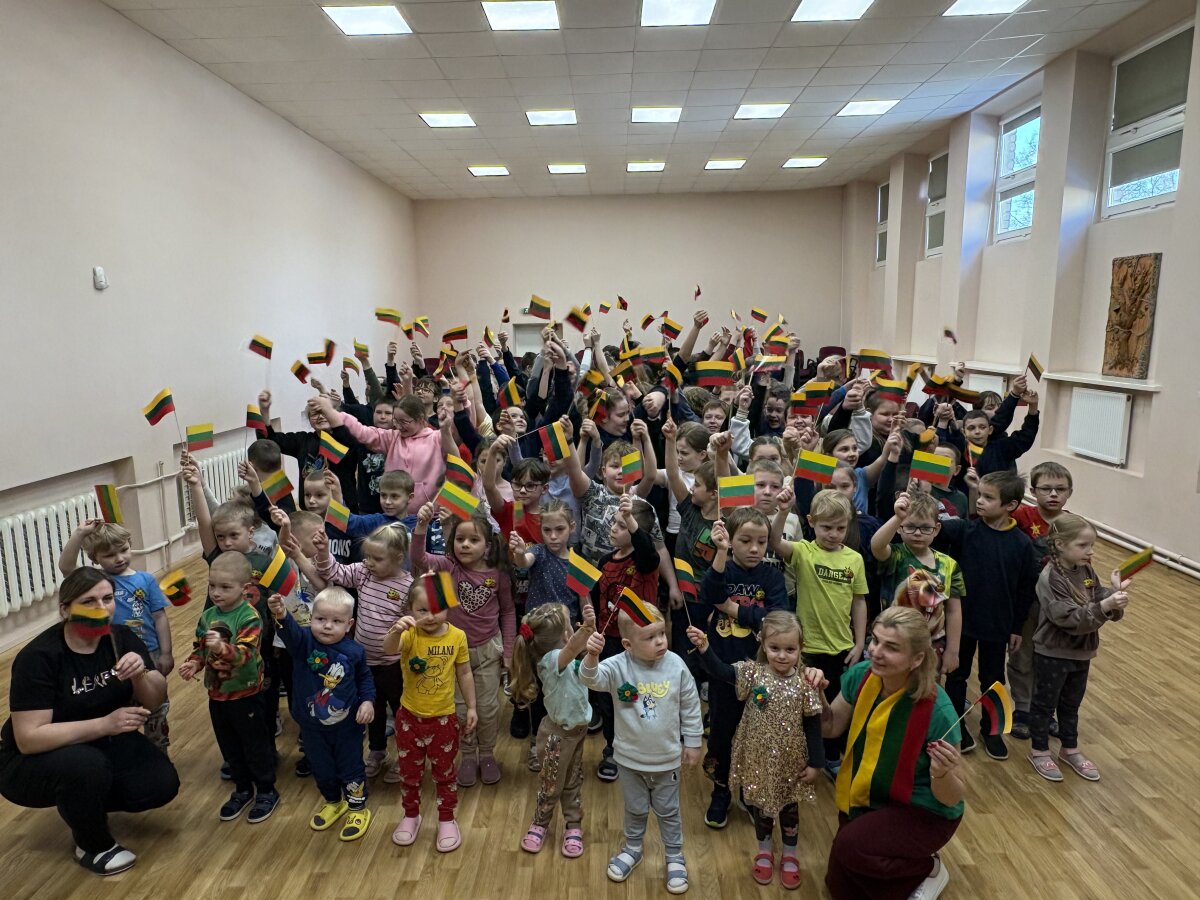 Pasipuošę tautine simbolika, su tautinėmis vėliavėlėmis ikimokyklinio ugdymo ir jungtinės ikimokyklinio