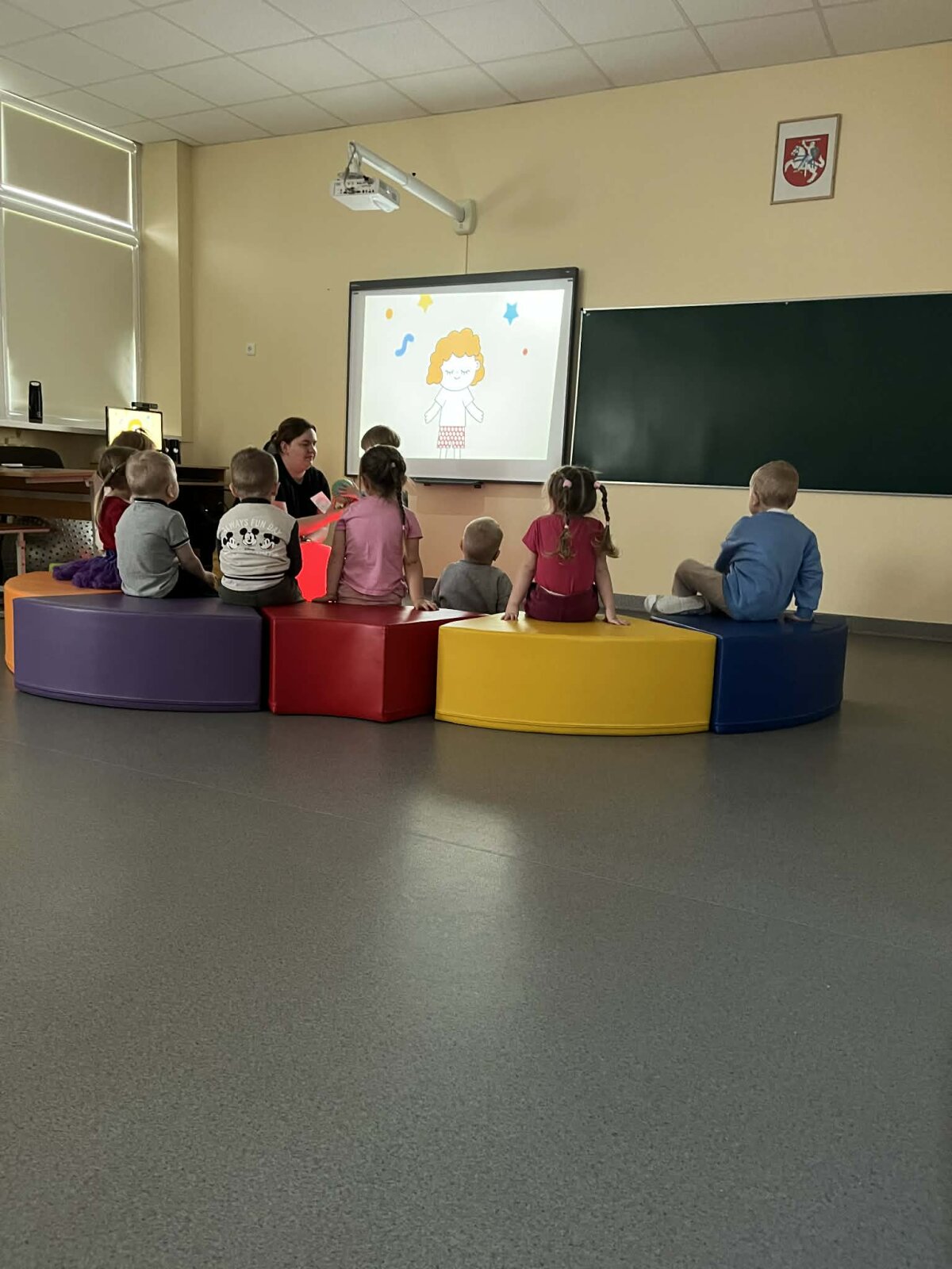 Ikimokyklinio ugdymo „Meškučių“ grupėje vyko emocijų pažinimo ir savireguliacijos užsiėmimas. Vaikai mokėsi atpažinti pagrindines emocijas, jas įvardyti ir ieškojo būdų, kaip sau padėti, kai jausmai tampa stiprūs ar sunkiai suvaldomi.
