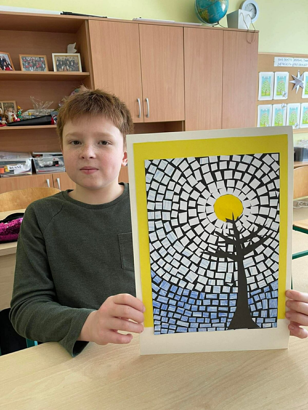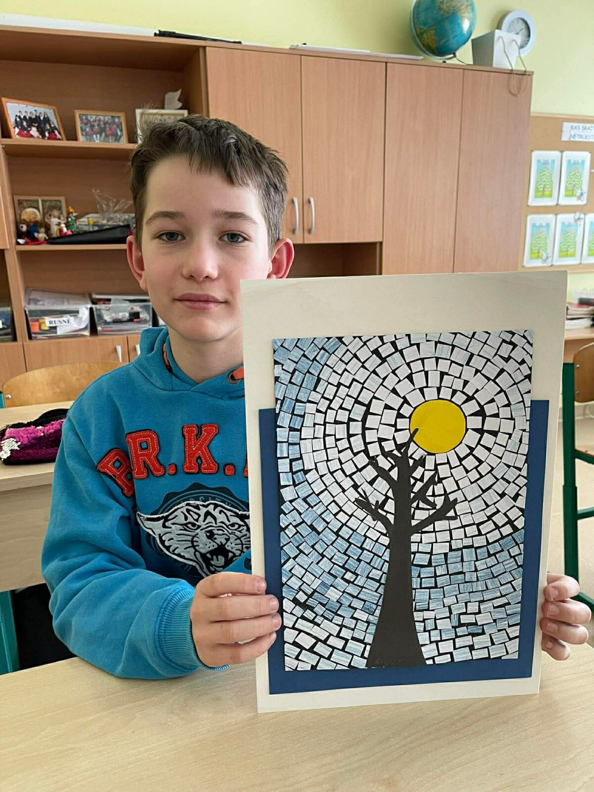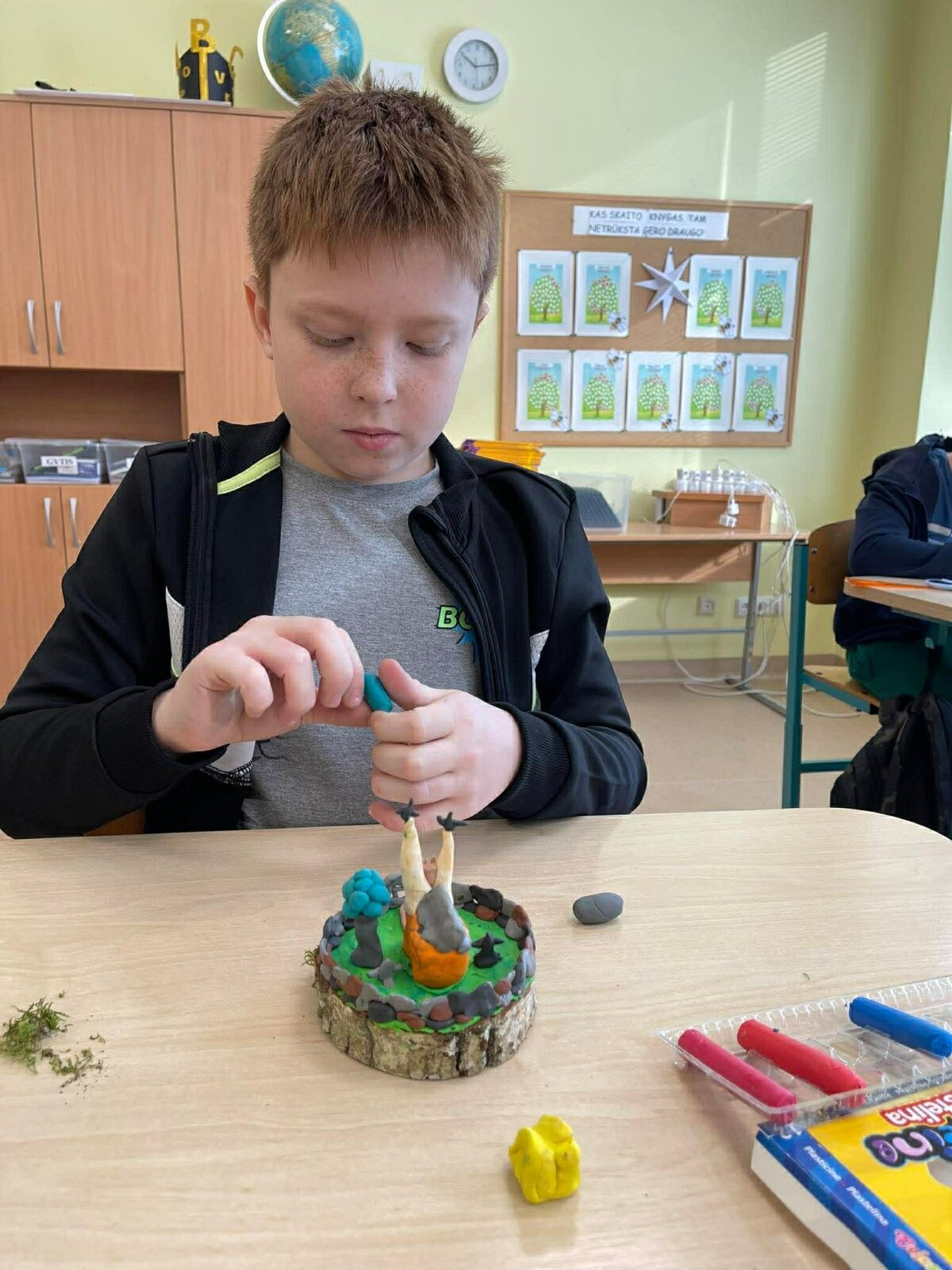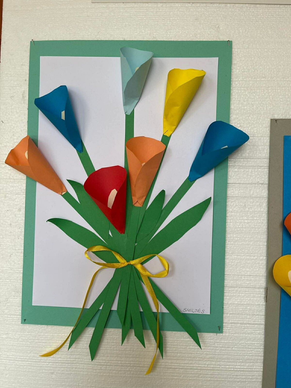 Mokiniai su didele meile ir kruopštumu kuria įvairius darbelius, kuriais papuošia savo klasę ir