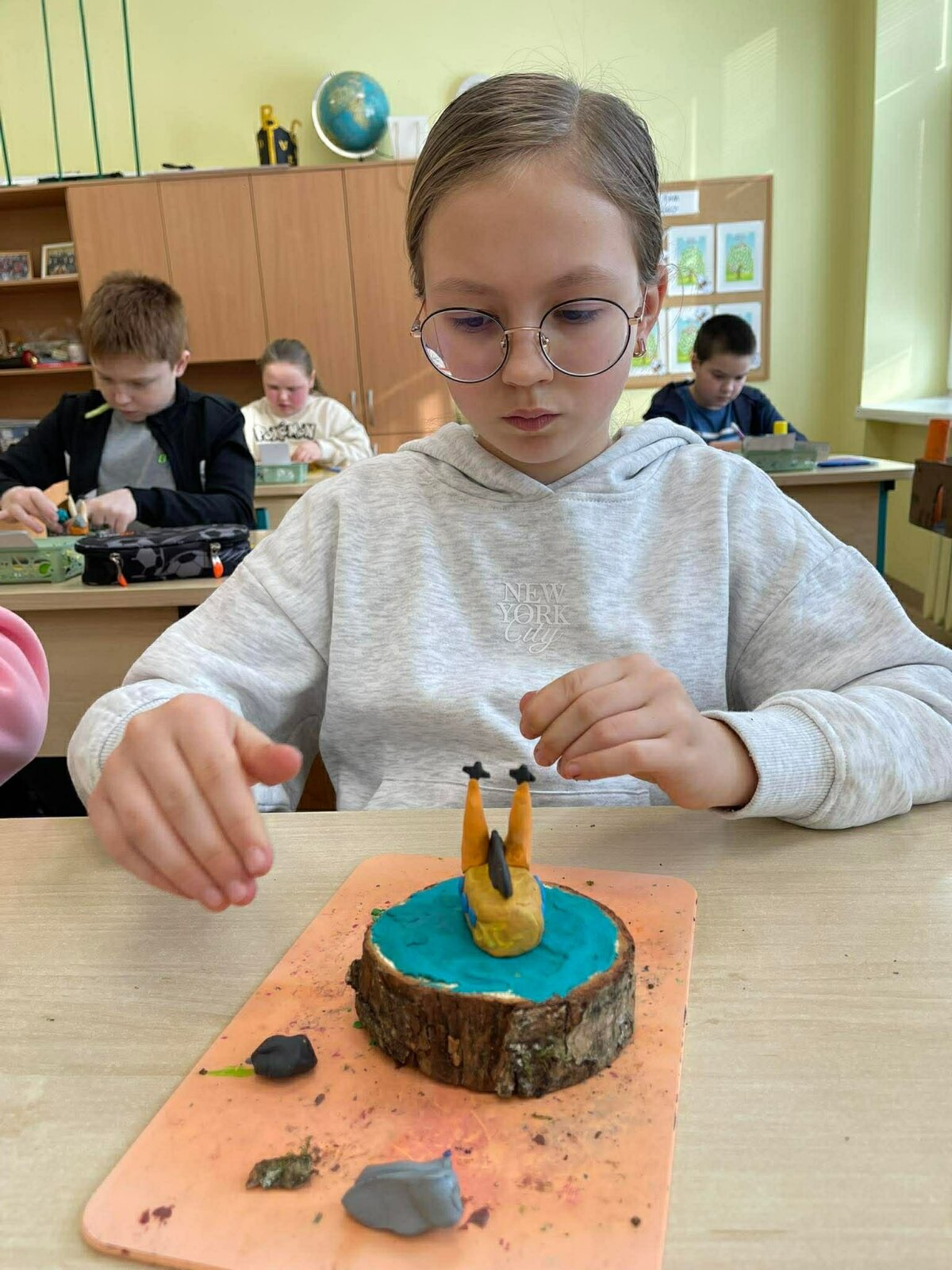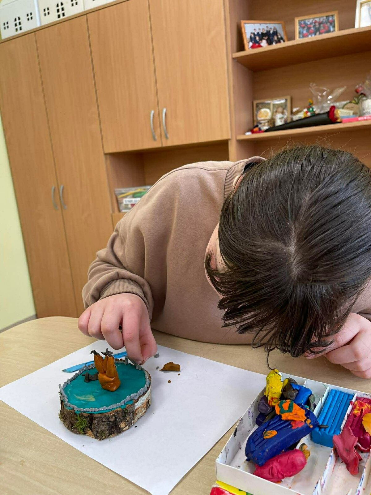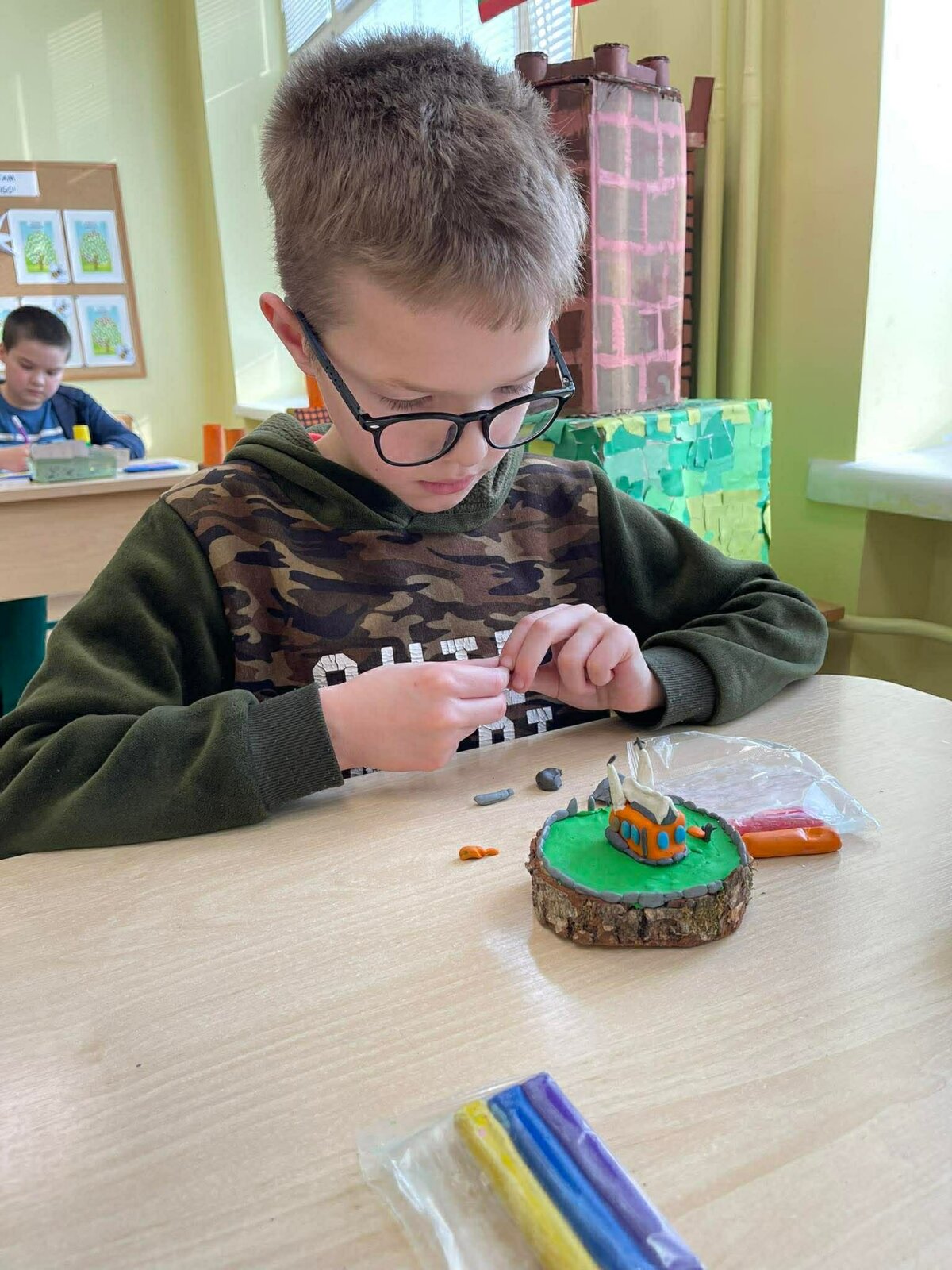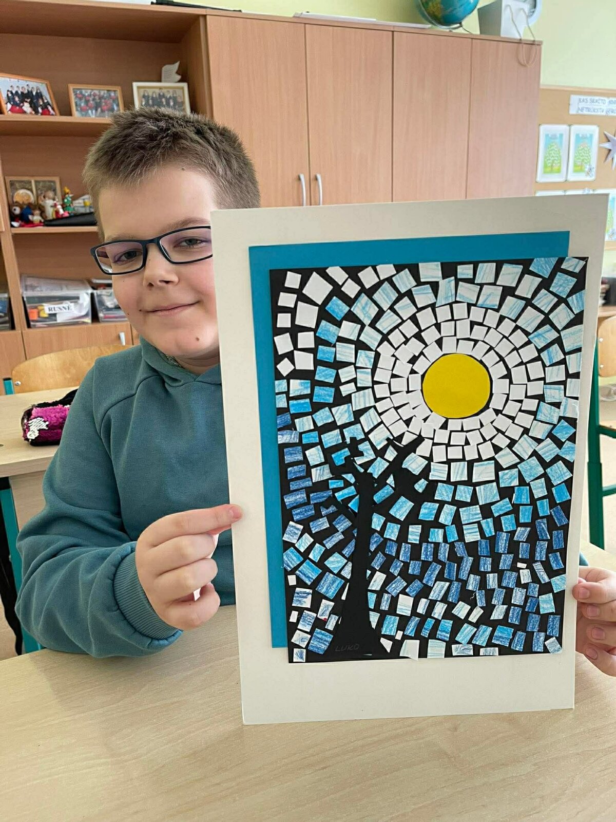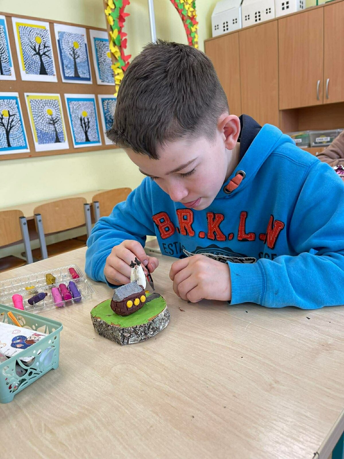 Mokiniai su didele meile ir kruopštumu kuria įvairius darbelius, kuriais papuošia savo klasę ir