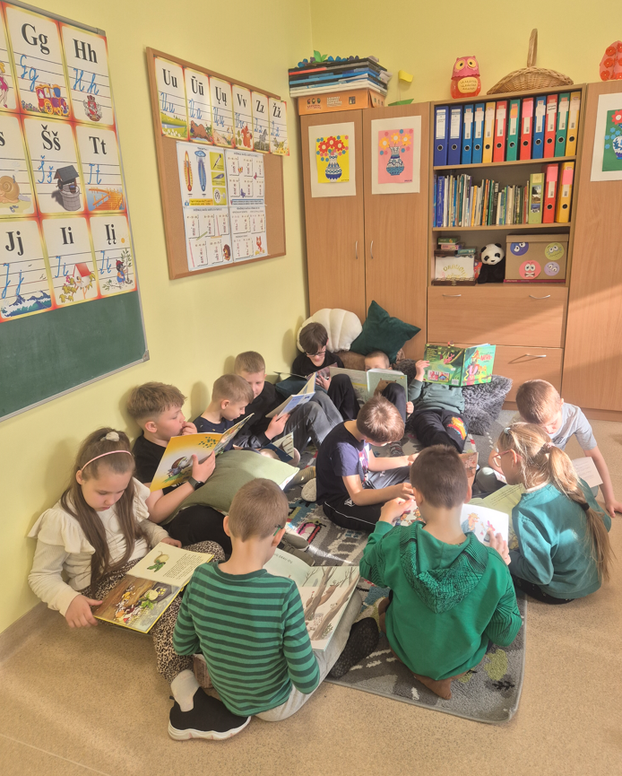 Pirmokai dalyvauja projekte „Gyvenu su knyga“. Kovo -balandžio mėnesiais mokiniai turėjo galimybę artimiau susipažinti su įvairiomis knygų aplinkomis. Vaikai lankėsi mokyklos bibliotekoje, kur sužinojo, kaip išsirinkti knygą ir kaip ja rūpintis. Klasėje įrengtame skaitymo kampelyje jie mokėsi ramiai ir susikaupus skaityti bei dalintis įspūdžiais su draugais. Taip pat apsilankė Žeimių miestelio bibliotekoje, kur susipažino su bibliotekininko darbu ir dar platesniu knygų pasauliu. Projektas skatino vaikų smalsumą, meilę knygai ir skaitymo įgūdžių ugdymą.