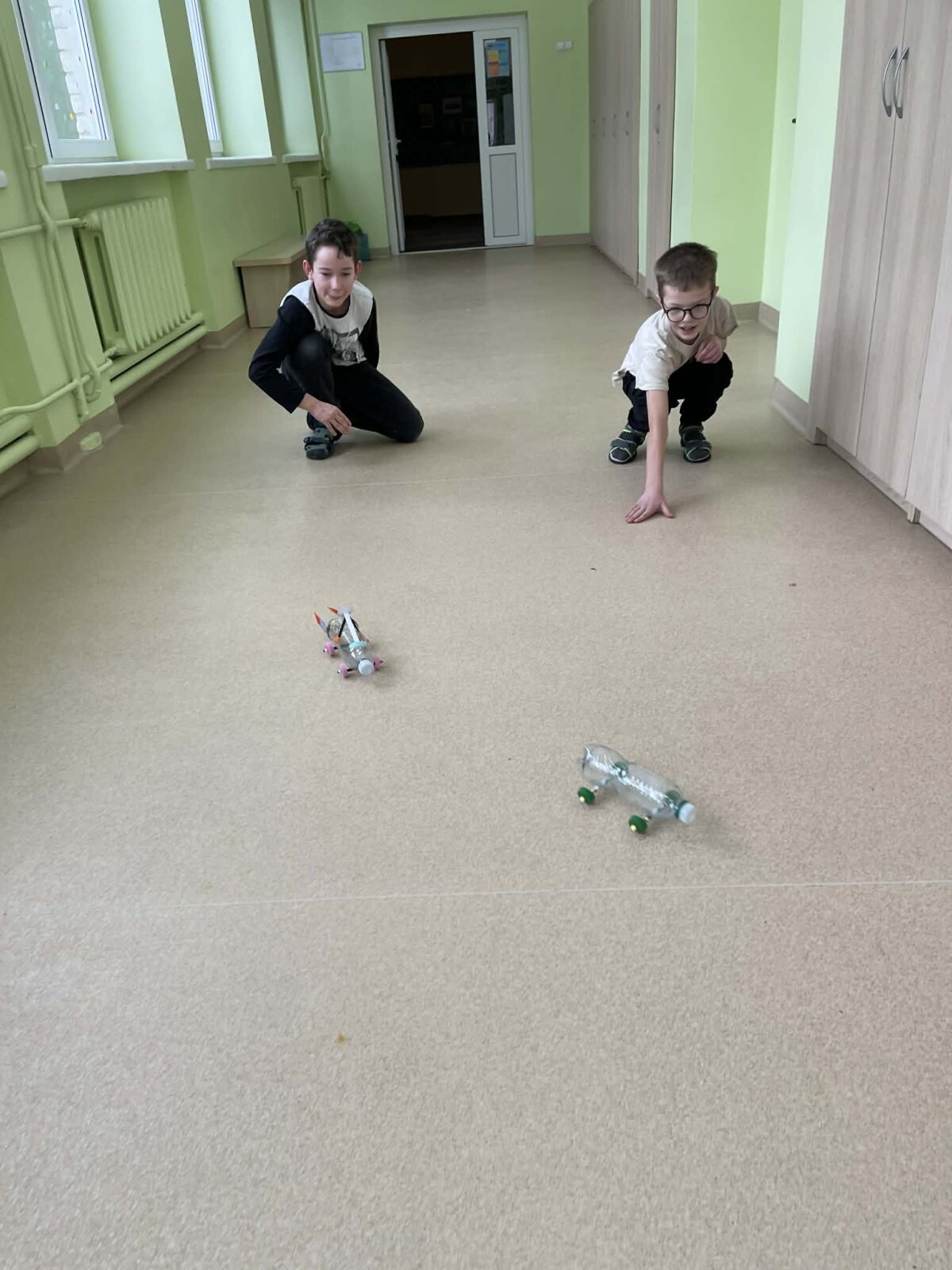 antrines žaliavas. Šiandien 4 klasės mokiniai per technologijų pamoką gamino vežimus iš