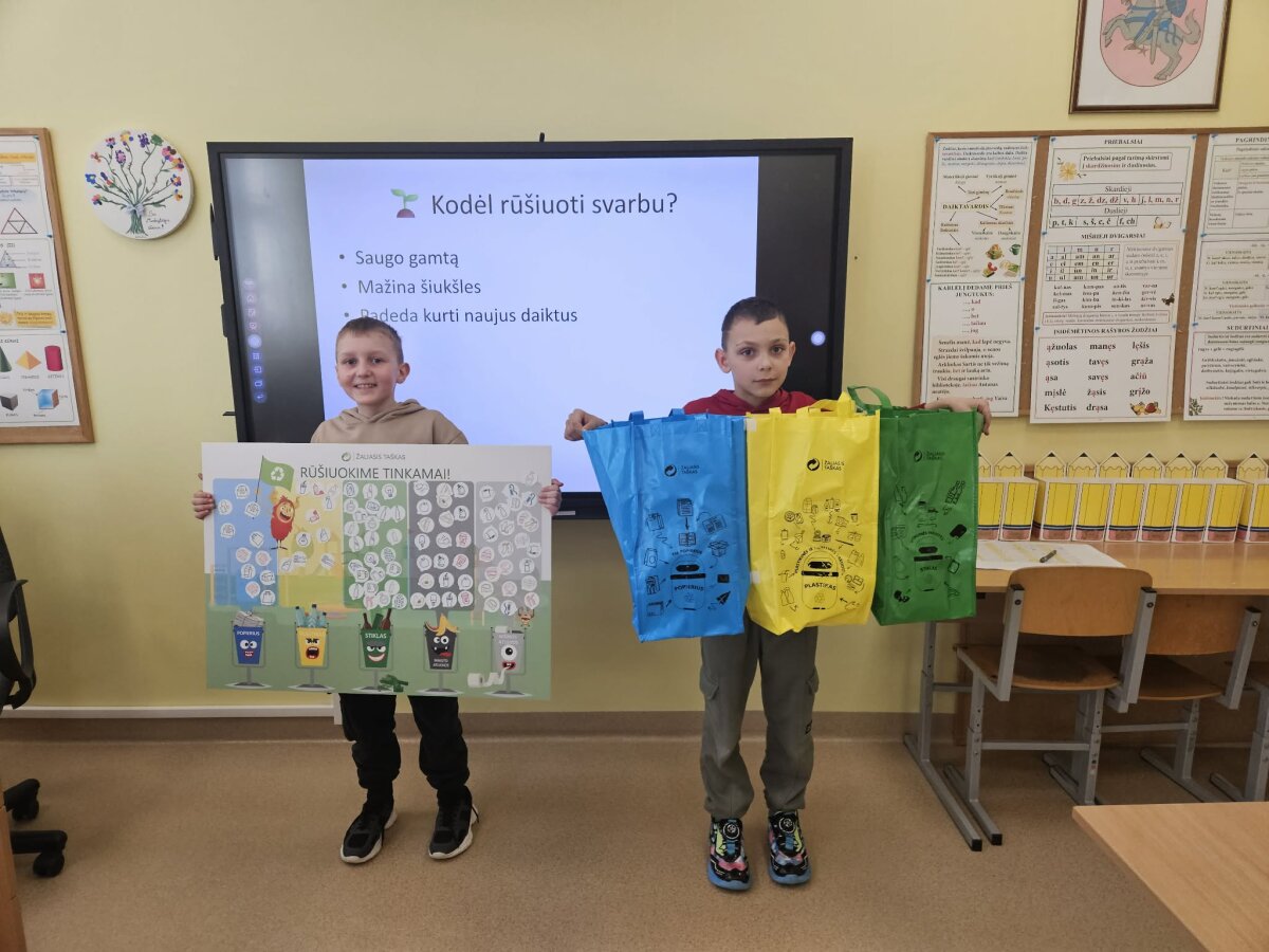 1–4 klasių mokiniai dalyvauja projekte „Tvari mokykla 2030“. Kovo mėnesį trečių klasių mokiniai aktyviai įsitraukė į projekto veiklas. Per technologijų pamokas jie gilino žinias apie atliekų ženklinimo reikšmę, aiškinosi, kaip teisingai rūšiuoti atliekas ir kodėl tai svarbu mūsų aplinkai. Per dailės pamokas trečiokai kūrybiškai pritaikė įgytas žinias – iš antrinių žaliavų kūrė velykines dekoracijas. Savo rankų darbo kūriniais mokiniai papuoš namus, taip dar kartą parodydami, kad tvarumas gali būti ne tik naudingas, bet ir kūrybiškas.