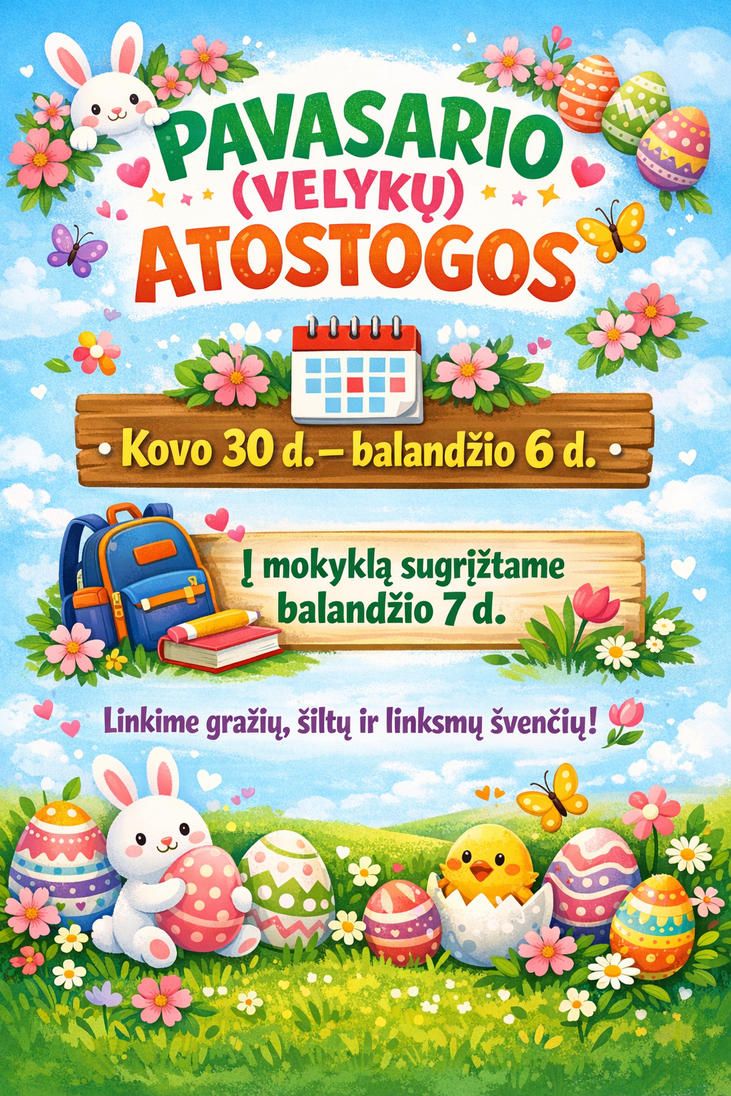 Pavasario (Velykų) atostogos: Kovo 30d. - Balandžio 6d.