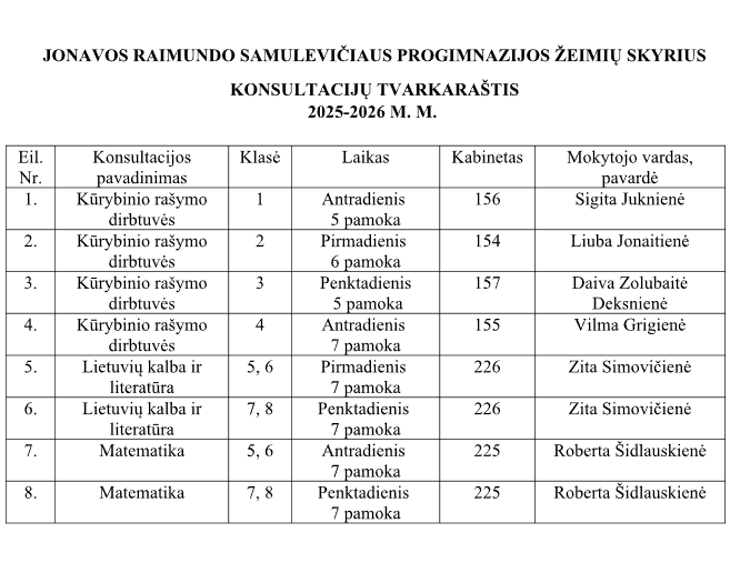 Konsultacijų tvarkaraštis
